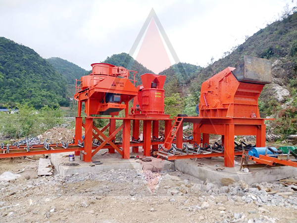 該砂石設備包括ZSW490*110給料機、PE750*1060顎式破碎機、PF1315反擊式破碎機、9928新型立軸沖擊破、1250復合破碎機、3層2460振動篩。該套砂石生產(chǎn)線產(chǎn)能設計在150-280t/h,依據(jù)處理的巖石硬度、風化程度而定。